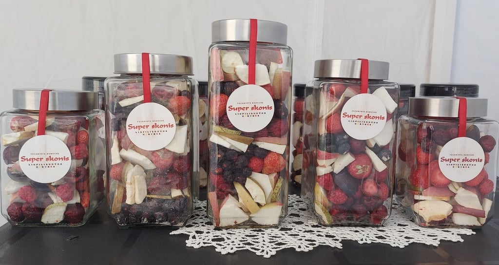 Mūsų tikslas - teikti aukščiausios kokybės produktus, naudojant modernias technologijas, kad išsaugotume maisto vertingąsias medžiagas ir skonį. Kiekvienas užsakymas yra gaminamas kruopščiai ir atsakingai, atsižvelgiant į klientų poreikius. Tad mūsų liofilizuoti produktai leidžia mėgautis šviežiais vaisiais, daržovėmis ir kitais maisto produktais bet kuriuo metų laiku.
